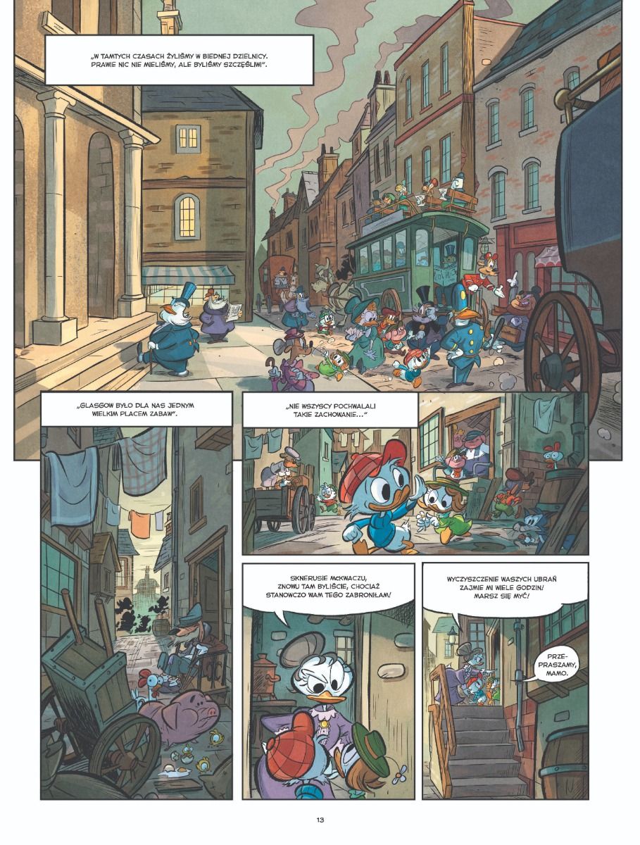 Wszyscy znamy Sknerusa McKwacza jako najbogatszego kaczora świata. A jaki był w dzieciństwie? Czy tak samo skąpy i kłótliwy? Przeniesiemy się do XIX-wiecznego szkockiego miasta Glasgow, gdzie Sknerus razem z siostrą i innymi dziećmi z biednych rodzin buszowali po opuszczonych korytarzach kopalni węgla. Czego tam szukali? I czy jest prawdą, że przyszły milioner w młodości kochał teatr? Odpowiedzi na te pytania znajdziemy w wesołej, ale też wzruszającej historii o przyjaźni, miłości i poczuciu odpowiedzialności.