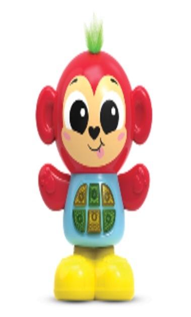 Gotowi na małpie podskoki? Ten uroczy zwierzak posiada sprężyste nóżki, dzięki czemu można go przycisnąć, słuchając przy tym zabawnych odgłosów sprężynowych skoków! Zabawka mówi po polsku i zna aż 25 różnych dźwięków oraz melodii, w tym także edukacyjną piosenkę. Za uruchamianie poszczególnych funkcji odpowiadają świecące przyciski na brzuszku małpki. Zielona czuprynka wyposażona została w sensor dotyku, dzięki czemu, po dotknięciu jej, usłyszymy zabawne odgłosy