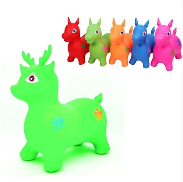 Skoczek to gumowa, nadmuchiwana zabawka do skakania w kształcie sympatycznych zwierzątek. Świetnie sprawdzi się podczas zabawy w domu oraz na świeżym powietrzu. Zabawka wspomagająca ćwiczenie zmysłu równowagi. 3 wzory: krowa, renifer, osio.