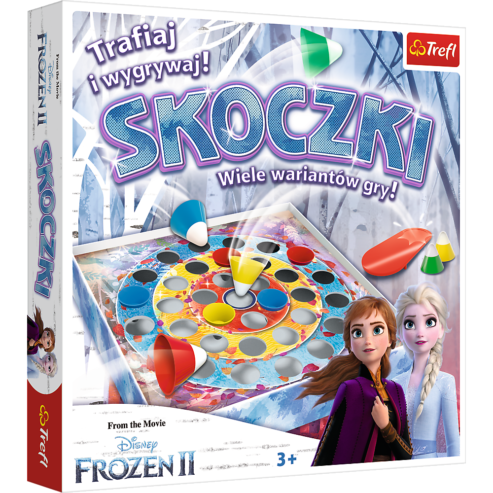 Skoczki na licencji filmu Frozen 2 to prosta gra zręcznościowa dla całej rodziny. Kto okaże się najlepszym strzelcem i trafi swoimi skoczkami w środek specjalnej tarczy? Przekonajcie się już teraz! Bohaterowie znanej bajki "Kraina lodu 2" zapraszają do wspólnej zabawy. Zawartość pudełka 12 skoczków 4 wyrzutnie 4 drzewka plansza Wiek graczy:3+ Liczba graczy: 2-4 Czas rozgrywki: 15 minut