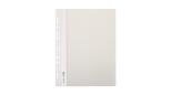folia PVC, przód twardy przezroczysty, tył twardy kolorowy, boczna perforacja umożliwiająca wpięcie do segregatora z dowolnym ringiem, w środku blaszka i wąs o długości 16,5 cm, umożliwiający wpięcie dokumentów do 2 cm, wymienny, papierowy pasek do opisu, dwa wycięcia ułatwiające wysuwanie paska, w formacie A4 zaokrąglone rogi obu okładek, format A4 i A5, występuje w 9 kolorach