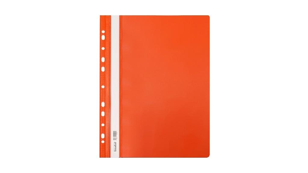 folia PVC, przód twardy przezroczysty, tył twardy kolorowy, boczna perforacja umożliwiająca wpięcie do segregatora z dowolnym ringiem, w środku blaszka i wąs o długości 16,5 cm, umożliwiający wpięcie dokumentów do 2 cm, wymienny, papierowy pasek do opisu, dwa wycięcia ułatwiające wysuwanie paska, w formacie A4 zaokrąglone rogi obu okładek, format A4 i A5, występuje w 9 kolorach