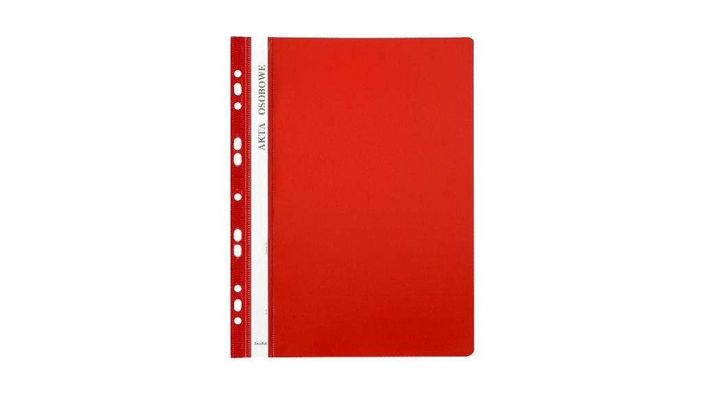 Skoroszyt wykonany z twardej, nieprzezroczystej folii PVC, dla ochrony danych osobowych. Wewnątrz zamontowano mechanizmy skoroszytowe umożliwiające wpięcie dokumentów. Wyposażony w uniwersalne, papierowe przekładki A, B, C, D, E bez opisu kategorii. Wzmocniona boczna perforacja umożliwiająca wpięcie do segregatora z dowolnym ringiem. Na przedniej stronie podłużna kieszeń z wymiennym, papierowym paskiem do opisu zawartości. Po obu stronach kieszeni dwa wycięcia ułatwiające wysuwanie paska.