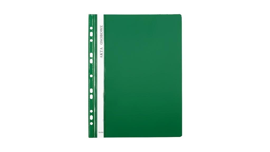 Skoroszyt wykonany z twardej, nieprzezroczystej folii PVC, dla ochrony danych osobowych. Wewnątrz zamontowano mechanizmy skoroszytowe umożliwiające wpięcie dokumentów. Wyposażony w uniwersalne, papierowe przekładki A, B, C, D, E bez opisu kategorii. Wzmocniona boczna perforacja umożliwiająca wpięcie do segregatora z dowolnym ringiem. Na przedniej stronie podłużna kieszeń z wymiennym, papierowym paskiem do opisu zawartości. Po obu stronach kieszeni dwa wycięcia ułatwiające wysuwanie paska.