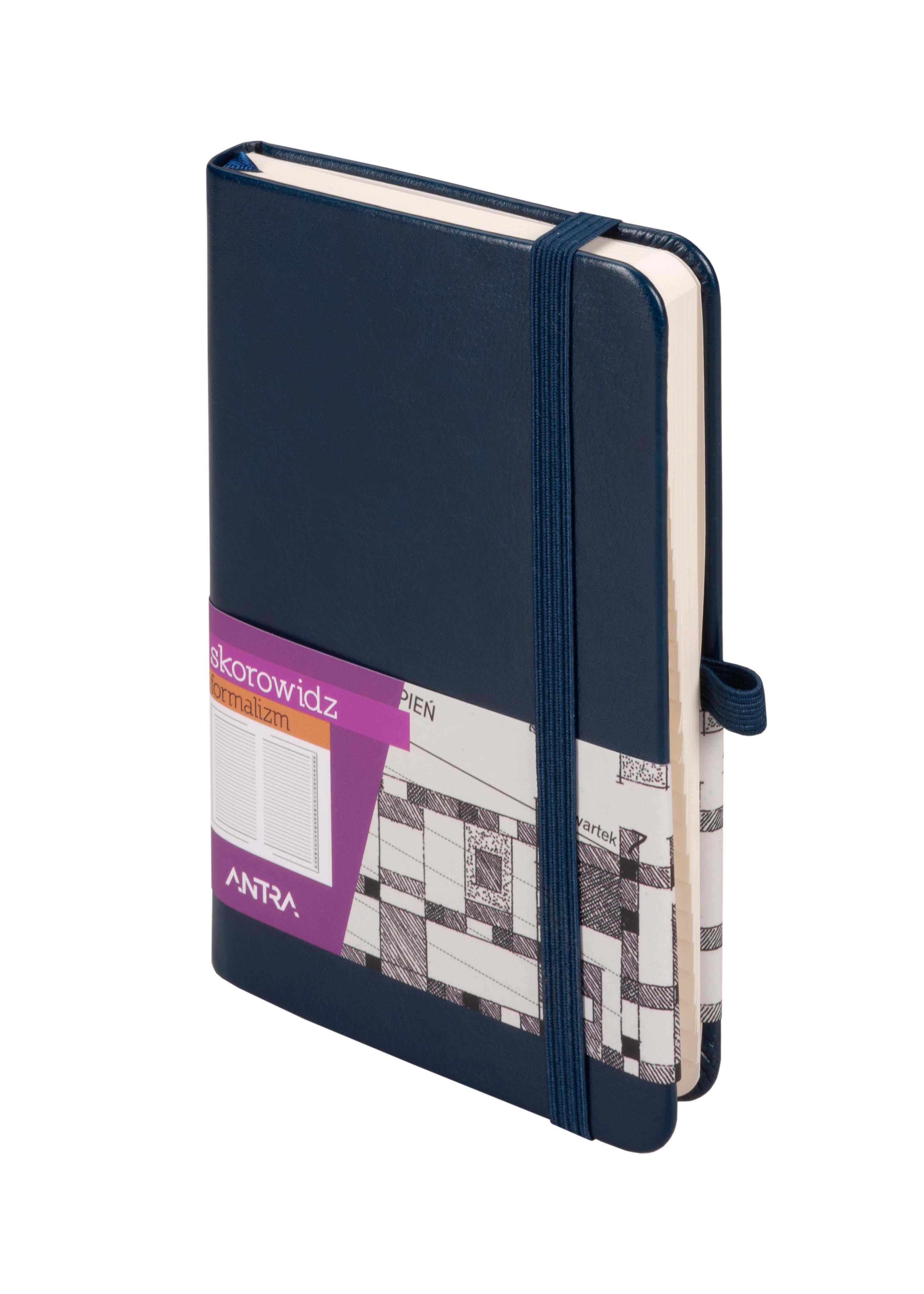 gramatura: 80 g, liczba stron: 208 ( po 4 strony na 1 literkę), okładka: twarda, materiał: skóra ekologiczna, wymiary: 140x90 mm, pionowa gumka zamykająca, gumka na długopis, zaokrąglone rogi, wyklejka z białego papieru ozdobnego, wnętrze: linia, koperta na luźne karteczki, wstążka w kolorze okładki, z tłoczonym logo ANTRA na tylnej okładce