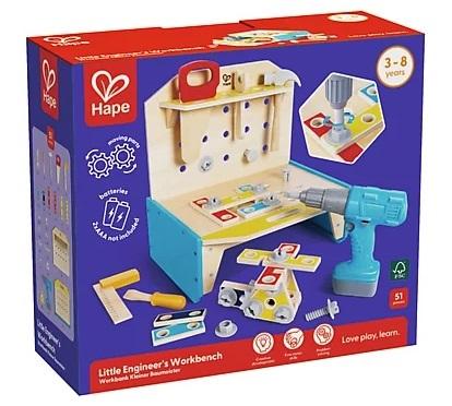 Zainspiruj młodych inżynierów dzięki drewnianej zabawce od marki Hape. Skrzynkę na narzędzia można w prosty sposób przerobić w wygodny stół warsztatowy. Zestaw zawiera realistyczne, drewniane narzędzia oraz elektryczną wkrętarkę, którą można wkręcać i wykręcać załączone śruby. Zabawka pobudza kreatywność i rozwija umiejętności motoryczne dziecka.