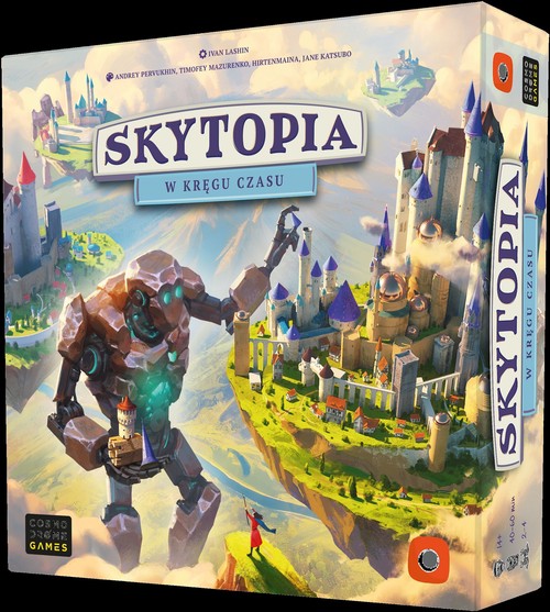 Skytopia to strategiczna gra planszowa Ivana Lashina, autora kultowego już Smartphona Inc. Tym razem, zamiast zajmować się produkcją telefonów komórkowych, przeniesiecie się do fantastycznego świata Skytopii, gdzie raz na sto lat podniebne miasta rywalizują ze sobą o zaszczytne miano Stolicy Przestworzy. Każdy z was stanie na czele jednej z czterech metropolii, wykorzystując potężnych Golemów do budowy majestatycznych Wież. Skytopia łączy w sobie proste zasady rozgrywki z ciekawym wykorzystaniem dice placement. Symbolizujące Golemy kości będziecie umieszczać na kartach Wież, rywalizując w wyścigu o ich jak najszybsze zbudowanie i aktywację. Umieszczanie kolejnych fragmentów Wież na waszych planszach Miasta będzie rozbudowywać silniczek akcji, dzięki czemu wasze działania z każdą turą będą coraz potężniejsze! Cosmodrome Games, wydawnictwo znane z takich tytułów jak Aquatica czy Smartphone Inc., po raz kolejny zadbało o fenomenalne wykonanie graficzne swojej gry!