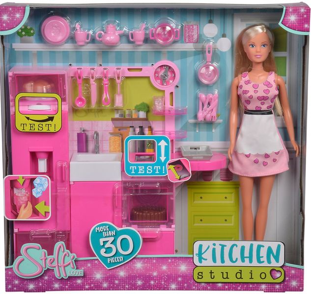 W skład zestawu wchodzi lalka Steffi ubrana w różową sukienkę i czarne szpilki, kuchnia dla lalki oraz akcesoria (takie jak garnki z pokrywkami, patelnia, sztućce, dzbanek czy kubki). Łącznie w zestawie znajduje się ponad 30 elementów. Kuchnia została wyposażona m.in. w:
