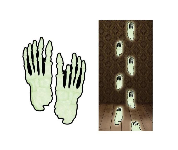 14 fluoryzacyjnych, świecących w ciemności śladów Szkieleta, które świetnie jako dekoracja wpasują się w klimat Hallowenowy.