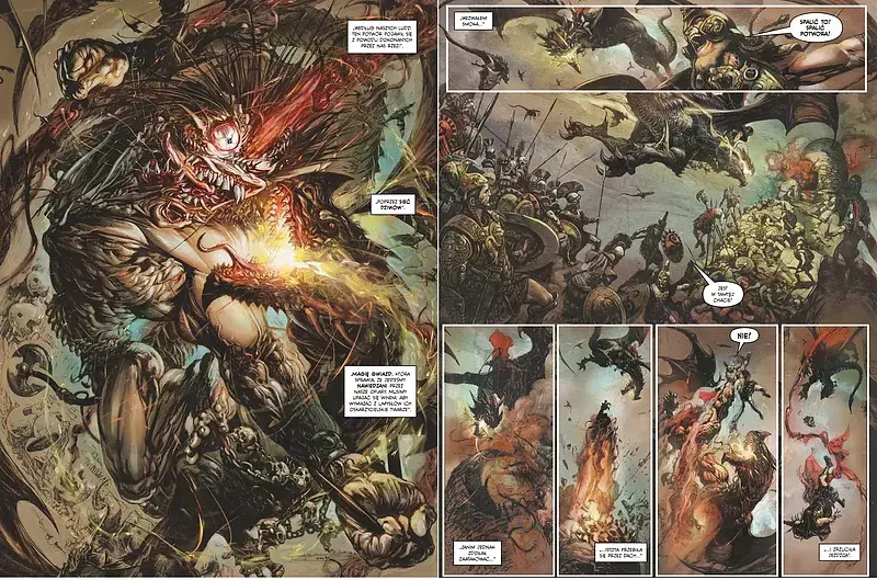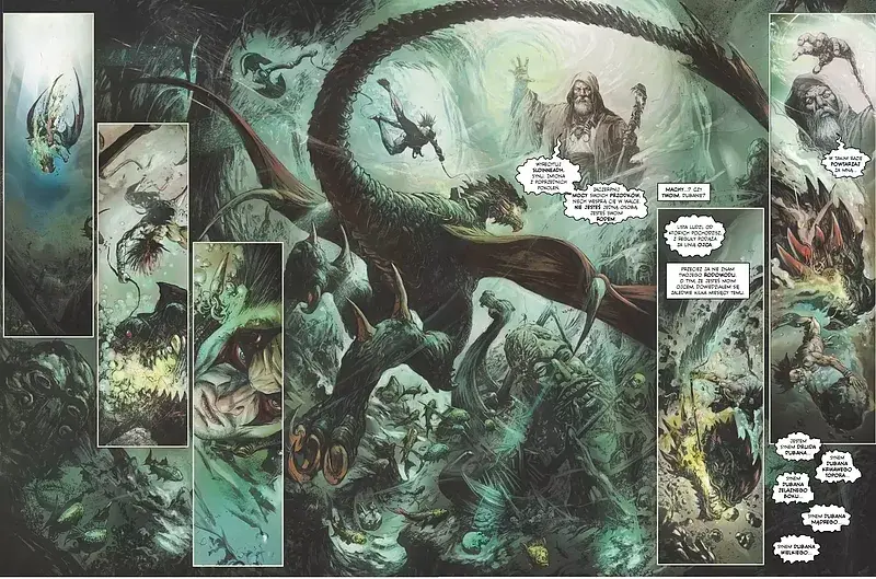 Wielki finał epopei fantasy o Slaine, celtyckim wojowniku przemierzającym, na przestrzeni wieków, tereny Brytanii . To ostatnia historia jaką napisał w tym uniwersum twórca tej postaci Pat Mills. Finał godny tego wojownika, fantastycznie, wręcz oszałamiająco zilustrowany przez Leonardo Manco. Ten artysta jest świetnie znany polskiemu czytelnikowi z Hellblazera, X-force czy sagi Millenium. To co jednak pokazał na kartach tej opowieści przebija każdy jego wcześniejszy komiks.