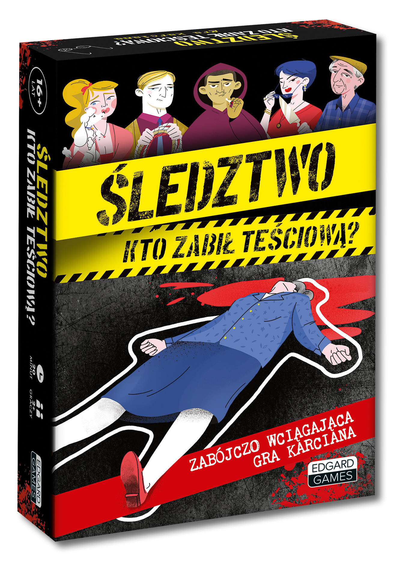 Gra kryminalna „Śledztwo. Kto zabił teściową?” Zabójczo wciągający sposób na świetną zabawę! Kto zabił teściową? Co wydarzyło się w mrocznej piwnicy? Dlaczego szantażowano influencerkę modową? Kto otruł księdza proboszcza? Wraz z towarzyszami rozgrywki wykorzystaj umiejętności dedukcji, żeby rozwikłać kryminalne intrygi i historie mrożące krew w żyłach. Śledztwo. Kto zabił teściową? to towarzyska gra kryminalna przeznaczona dla minimum dwojga graczy, w której dzięki trafnym pytaniom i precyzyjnej analizie zgromadzonych danych rozwiązujesz zagadki kryminalne. Na czym polega gra? Jeden z graczy wciela się w rolę świadka i na podstawie karty zbrodni oraz kart śledztwa układa historię przestępstwa. Pozostali gracze, odgrywający rolę śledczych, starają się zrekonstruować bieg wydarzeń, zadając świadkowi właściwe pytania. Dołącz do ekipy śledczych i daj się porwać w mroczne zakamarki wyobraźni! W pudełku znajdziesz zestaw 110 kart, w tym karty: osób, motywów, przedmiotów, miejsc, zbrodni, pomocy i kartę kto zabił teściową, które pomogą w zbudowaniu niesamowitych historii przyprawiających niejednego detektywa o zawrót głowy. Połączcie siły i wspólnie odkryjcie, co się wydarzyło! Wiek graczy: 16+ Liczba graczy: 2+ Czas rozgrywki: 20 minut