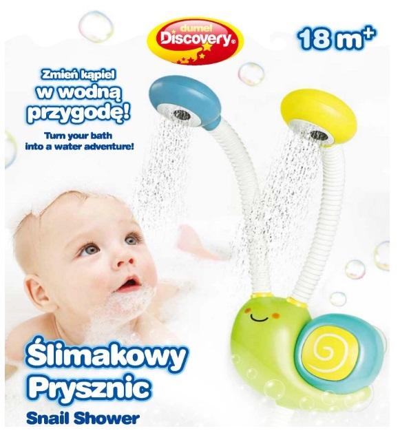 Zmień prysznic we wspaniałą zabawę z wodnym ślimakiem! Przymocuj zabawkę do ściany wanny za pomocą przyssawek, umieść w wodzie pompkę i naciśnij na ślimakową muszlę, a z oczu ślimaka tryśnie woda. Czułki wyginają się na wszystkie strony, dzięki czemu możesz zmieniać kierunek wytryskiwania wody. Zabawka wymaga użycia 3 baterii AA, baterie nie są zawarte w zestawie