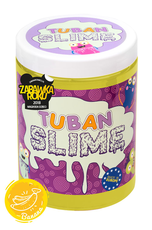 TUBAN Slime o zapachu banana. Fantastycznie się ciągnie i ugniata. Można z jego pomocą robić slimowe bańki.