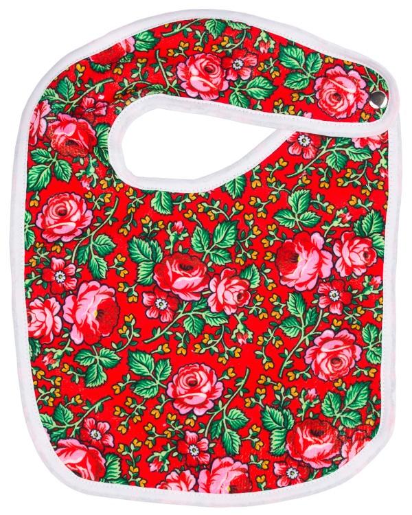 Śliniak z góralskim wzorem : projekt inspirowany tradycyjnymi wzorami ludowymi z damskiego stroju góralskiego,motywem przewodnim wśród góralskich wzorów są parzenice wyszywane na spodniach oraz kwieciste motywy zdobiące spódnice i chusty,materiał: 100% bawełna,kolorowy nadruk na jednej stronie, spód biały,zapinany na nap,miękki w dotyku,praktyczny - skutecznie ochroni ubranie malucha przed zabrudzeniami,niezbędny element wyprawki niemowlęcej