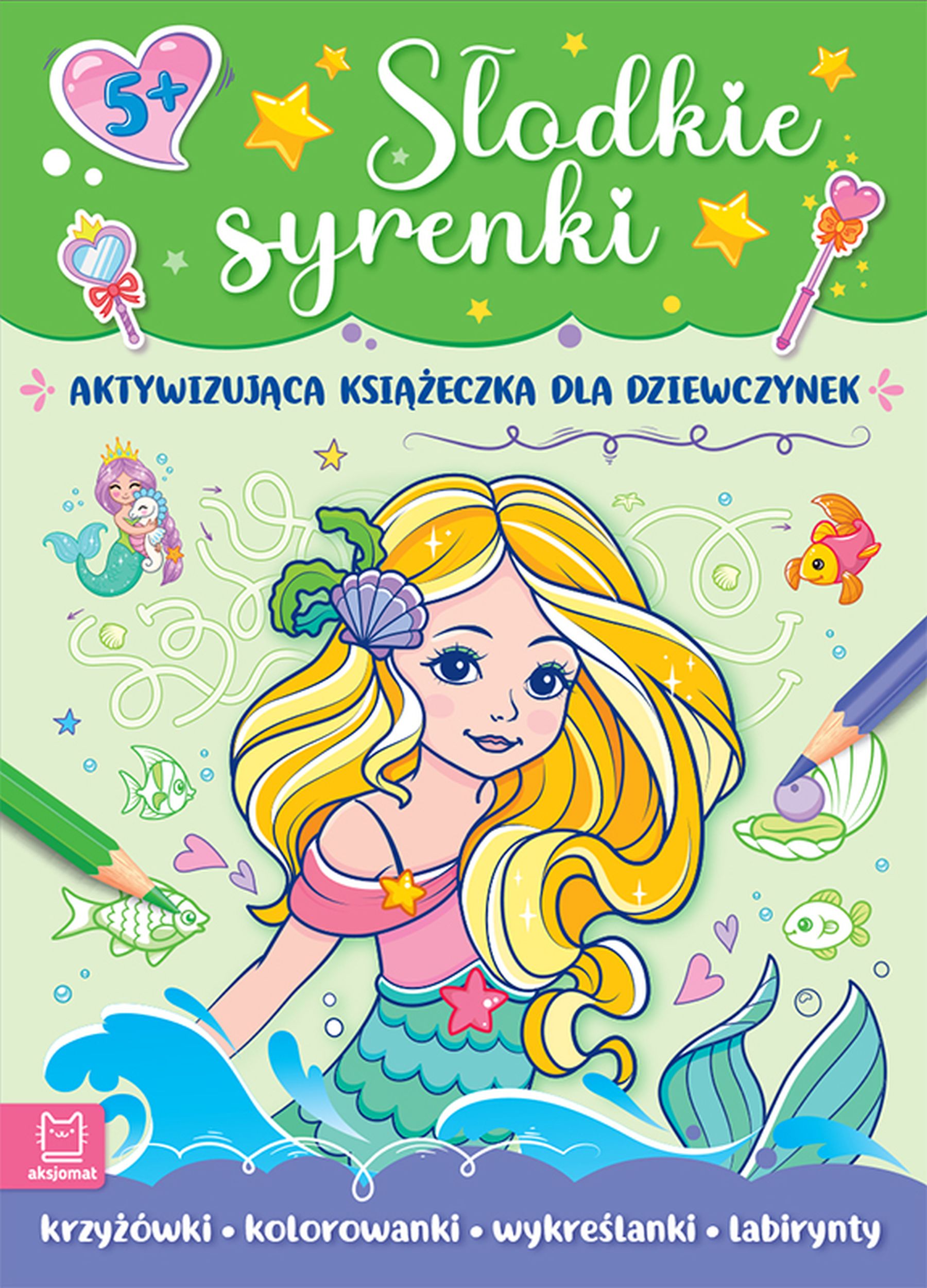 "Słodkie syrenki. Aktywizująca książeczka dla dziewczynek" to zbiór zajmujących łamigłówek oraz kolorowanek do ciekawego spędzania czasu i rozwijania wielu przydatnych umiejętności. W książce dzieci znajdą sześć typów zadań: