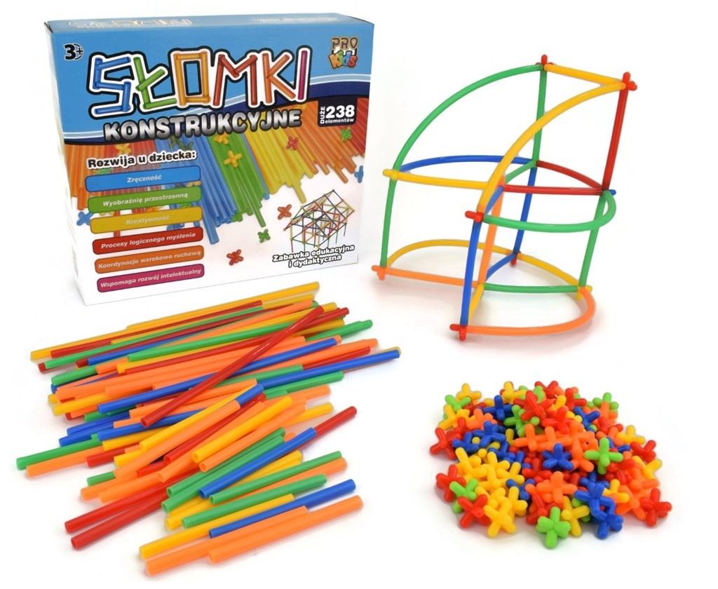 Zestaw SŁOMKI KONSTUKCYJNE składa się z 238 elementów. Możemy konstruować każdą budowlę jaką tylko dziecko sobie wymyśli. Innowacyjny system szybkiego łączenia elementów powoduje że dziecko szybko i chętnie rozwija swoje kreatywne umiejętności. Wspaniała zabawa dla jednej osoby jak i całej rodziny. Zestawy można ze sobą łączyć aby konstruować coraz większe konstrukcje podnosząc tym samym poziom trudności.