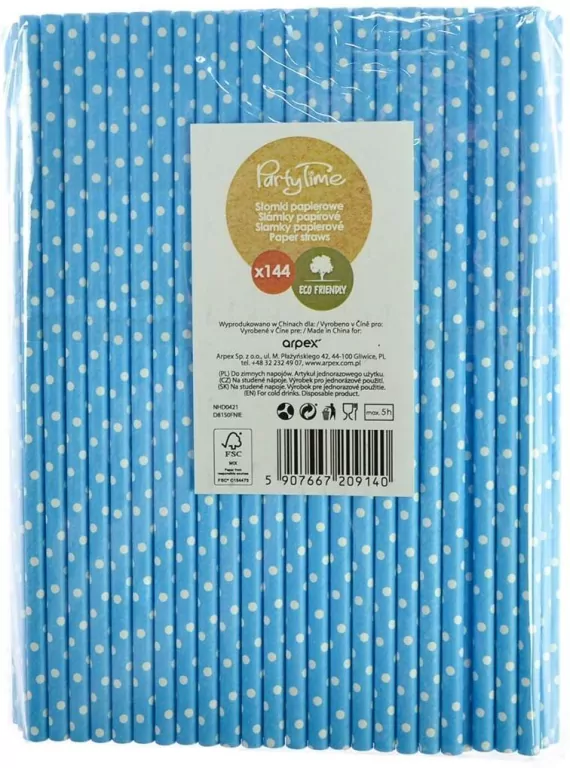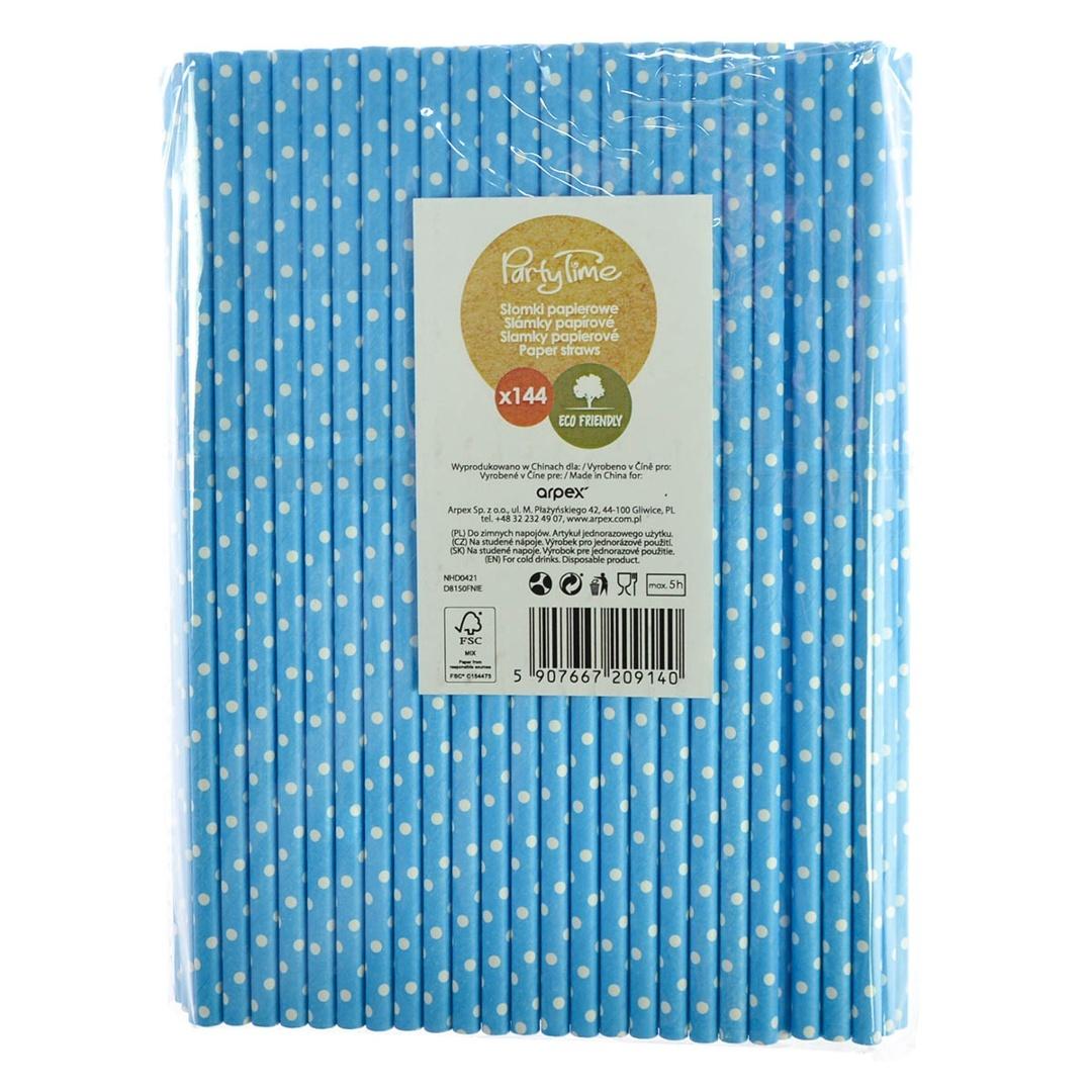 Opakowanie Słomki papierowe niebieskie w białe kropki 144szt