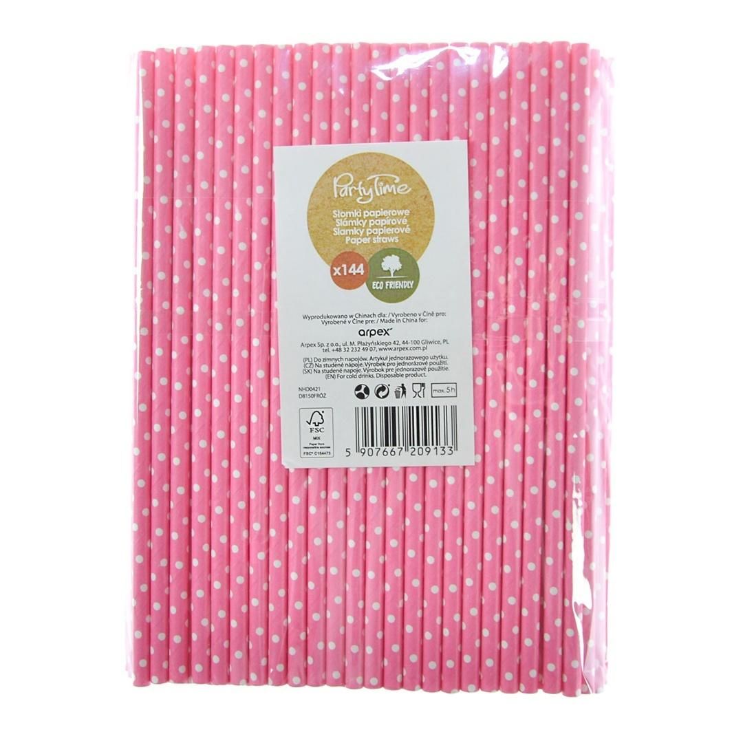 Opakowanie Słomki papierowe różowe w białe kropki 144szt