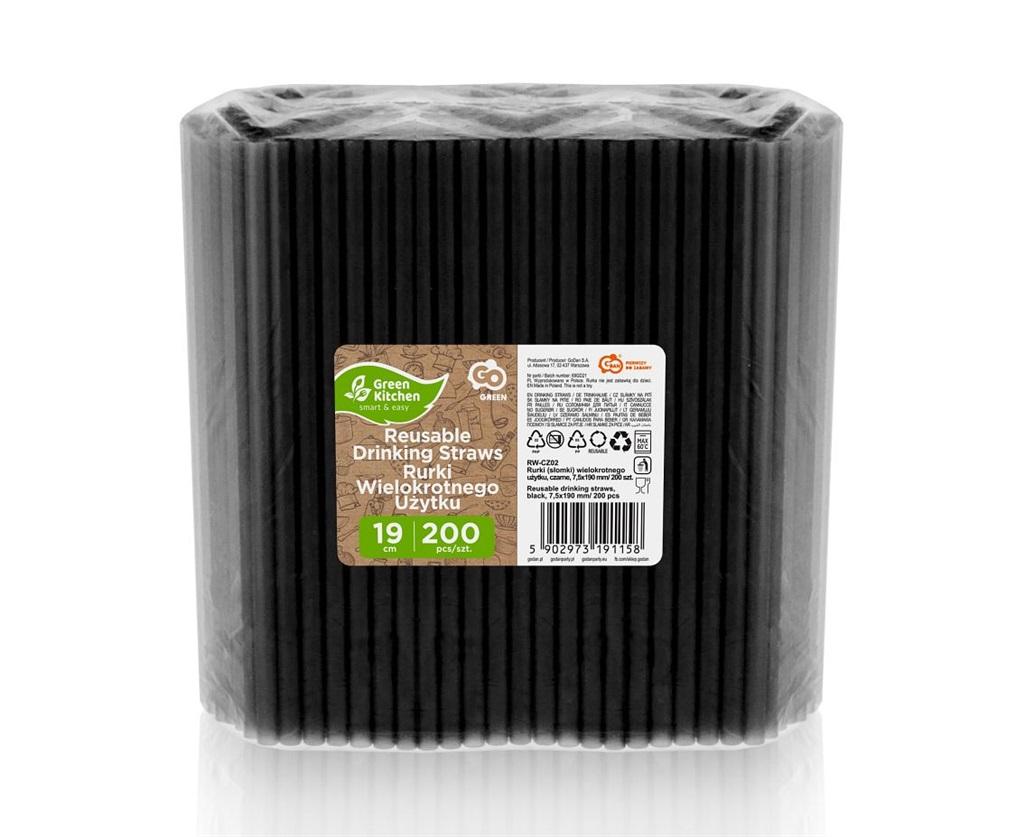 SŁOMKI WIELOKROTNEGO UŻYTKU, CZARNE Długość: 19,0 cm Średnica: 0,75 cm Ilość sztuk w opakowaniu: 200 szt.