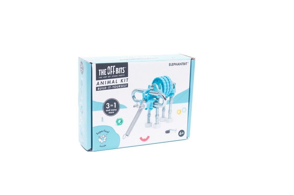 Przygotuj części i zmierz się z wyzwaniem! Zestaw 3-w-1 umożliwia stworzenie co najmniej 3 różnych modeli z instrukcji (słoń, robot i pies), ale także wiele innych. Ograniczeniem jest tylko wyobraźnia i kreatywność! System zabawek konstrukcyjnych „open-source” OFFBITS® oparto na zestawach do samodzielnego montażu, wykonanych ze specjalnie przygotowanych elementów, wzbogaconych o standardowe części, które można znaleźć w każdym sklepie budowlanym. Zestawy zawierają kolorowe postaci robotów z inspirującymi historiami, jak również niestandardowe pojazdy, zestawy rozszerzeń, dodatkowe narzędzia i akcesoria. Zestawy można dowolnie łączyć ze sobą. Można je też łatwo rozszerzać o dodatkowe części z dowolnej domowej skrzynki narzędziowej. Zestaw postaci zawiera broszurę ze szczegółowymi instrukcjami, narzędzie SuperTool™ i unikatowy kod rejestracyjny do internetowej społeczności twórców, dostępnej na stronie theoffbits.com. Narzędzie SuperTool™ pięć-w-jednym jest zawarte w każdym zestawie i jest dostosowane do standardowych rozmiarów wspólnych dla wszystkich zestawów i części OFFBITS®. OFFBITS® to nowa, ekscytująca firma, wyróżniająca się unikatowym i awangardowym podejściem do zabawek. Zabawki nowej generacji zawierają powszechnie znane elementy. Projektowane są jednak w taki sposób, by pobudzać kreatywność i wyobraźnię niezależnie od wieku.