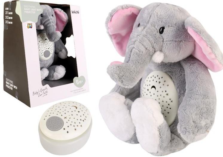 Słoń emituje delikatne światła w kształcie gwiazdek i księżyca, tworząc magiczną atmosferę w pokoju dziecięcym. Dodatkowo, maskotka oferuje uspokajające melodie, które pomogą maluszkowi zrelaksować się i szybko zasnąć.