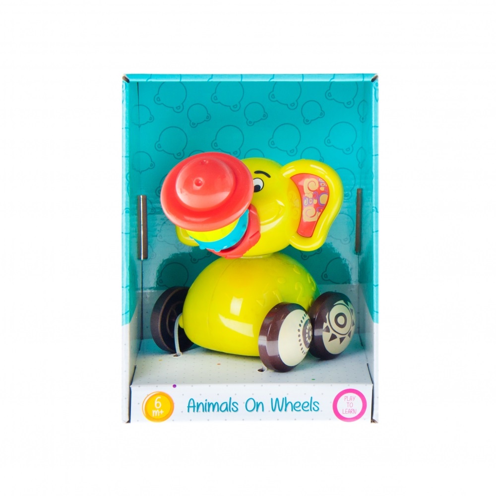 Urocza postać SŁONIKA na KÓŁKACH to zabawka edukacyjna dedykowana aktywnym odkrywcom już od 6 m-ca życia. Kolorowy slonik porusza się na kółkach za pomocą popchnięcia, co aktywizuje rozwój motoryczny i fizyczny dziecka, wyrabiając zmysł równowagi i koordynację. Kolorowe i o zróżnicowanej teksturze pieścienie na szyi słonika uwrażliwają malucha na bodźce manualne, wyrabiają zdolnosci motoryczne małe. Zabawka edukacyjna przeznaczona dla dziecka od 6 m-ca. Wymiary/waga/baterie: wymiary produktu (dł. x wys. x gł.)[cm]: 9x13x13, wymiary opakowania (dł. x wys. x gł.)[cm]:13x17x12, waga produktu bez opakowania [kg]: 0,12 kg, waga produktu w opakowaniu [kg]: 0,19 kg, nie wymaga zasilania bateriami. Zabawka przeznaczona dla dzieci w wieku: 6m+. Pakowana w kartonik z otwartym okienkiem.
