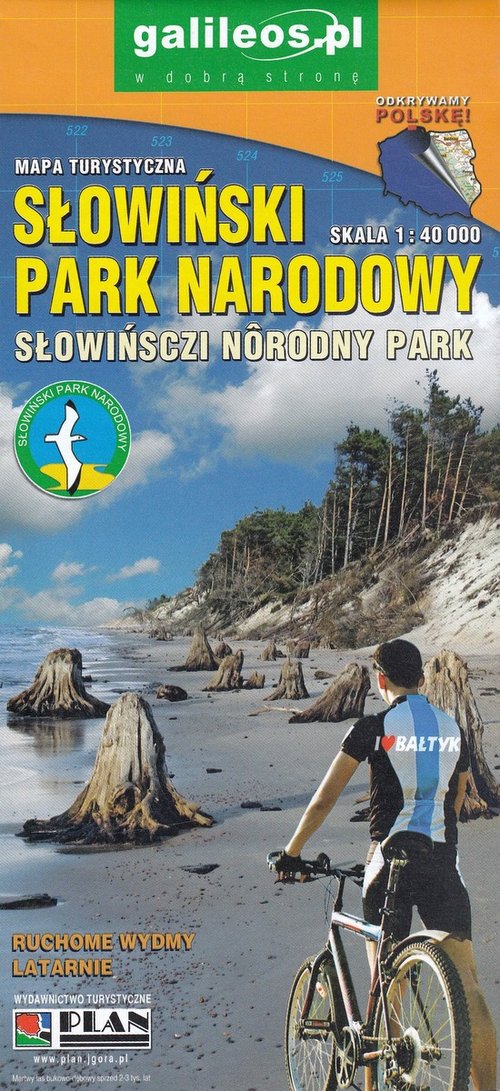 Nowe wydanie aktualizowanej w terenie mapy turystycznej. Na arkuszu znajdują się szlaki turystyczne piesze i rowerowe, zaznaczone atrakcje turystyczne oraz plany Kluk i Smołdzina w skali 1:8 000. Na rewersie przedstawiono bogaty opis krajoznawczy najważniejszych atrakcji w Słowińskim Parku Narodowym.