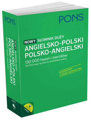 Nowy duży słownik angielsko-polski, polsko-angielski PONS, zawierający 130 000 haseł i zwrotów oraz 150 00 pojęć łącznie ze słownikiem online, to największa baza słownictwa angielskiego, dostępna w ofercie PONS. Słownik jest więc nieodzowną pomocą zarówno dla osób uczących się angielskiego, jak i osób pracujących z językiem na co dzień w pracy zawodowej w tym dla tłumaczy języka angielskiego.