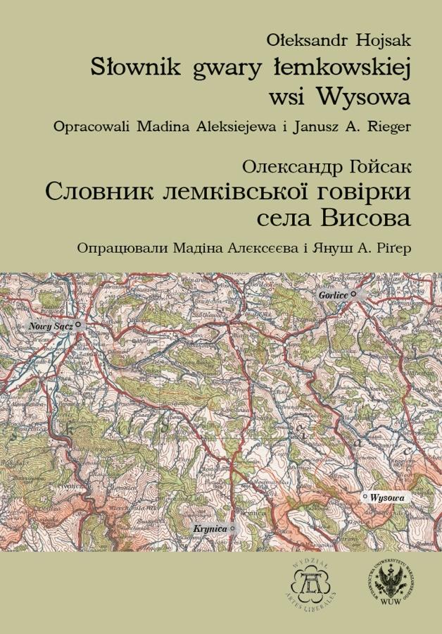 Słownik wyrazów i zwrotów łemkowskich zebranych przez Ołeksandra Hojsaka pochodzącego z Wysowej. Wśród ok. 3000 haseł Słownika jest wiele wyrazów potocznych, w większości związanych z życiem codziennym społeczności wiejskiej i pracą na roli, często nienotowanych w innych słownikach. W aneksie znalazły się m.in. leksyka specjalistyczna (części wozu, pługa, krosien, uprzęży), dziecięca, porzekadła, zagadki, przekleństwa, wyzwiska, a ponadto imiona, nazwiska i przezwiska mieszkańców wsi, nazwy zwierząt oraz nazwy potoków, gór, pól i pastwisk. Dictionary of the Lemko dialect from the village of Wysowa A dictionary of Lemko words and expressions, featuring around 3,000 entries. It includes a large number of colloquial words, often unrecorded in other Lemko dictionaries. The appendix contains, among others, a specialist lexicon, a child’s vocabulary, popular sayings, riddles, swearwords and insults, as well as names, second names, and nicknames of the inhabitants of the village, names of animals, streams, mountains, fields and pastures. Keywords Wysowa, Lemkos, Lemkivshchyna, dialect, Lemko dictionary