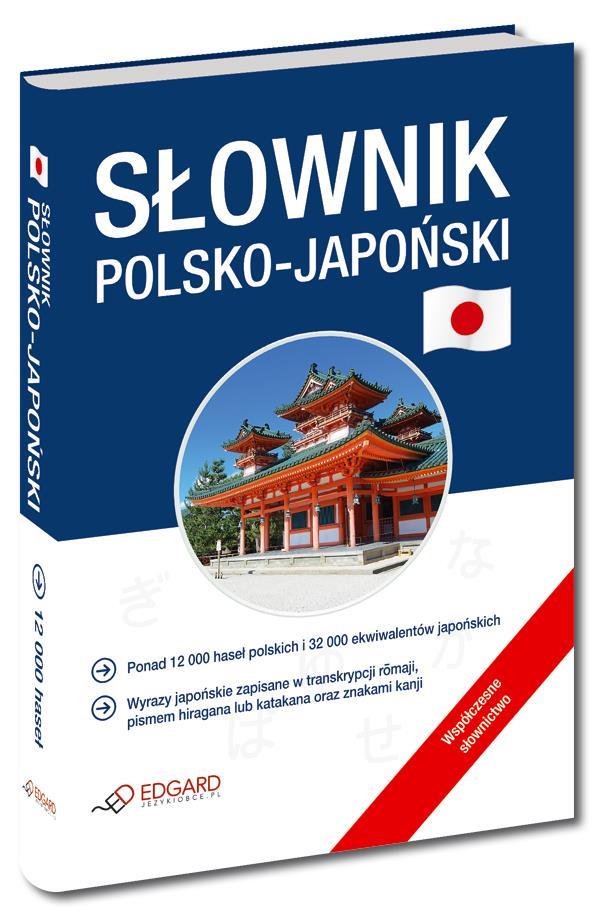 W słowniku:- ponad 12 000 haseł polskich i 3000 przykładów użycia- podział na znaczenia, wskazówki ułatwiające wybór właściwego ekwiwalentu- 32 000 ekwiwalentów japońskich - słowa japońskie zapisane w transkrypcji rōmaji, pismem hiragana lub katakana oraz znakami kanji- słownictwo z obszaru nowych technologii, medycyny oraz najczęściej używane wyrażenia potoczneSłownik powstał z myślą o wszystkich uczących się języka japońskiego, zarówno na poziomie podstawowym, jak i tych, którzy osiągnęli już zaawansowane umiejętności językowe.Zawiera 12 000 haseł polskich oraz 32 000 ekwiwalentów japońskich. W słowniku znajdują się także przykłady użycia słów. Jest doskonałym uzupełnieniem podręczników do nauki języka japońskiego oraz niezbędny w przygotowaniach do międzynarodowego egzaminu kompetencji z języka japońskiego (Nihongo Nōryoku Shiken).Słownik opracowany został według łacińskiej kolejności alfabetycznej. Słowa japońskie podane są w rōmaji (zgodnie z najbardziej popularną na świecie transkrypcją Hepburnea), ale także zapisane hiraganą lub katakaną oraz znakami kanji.