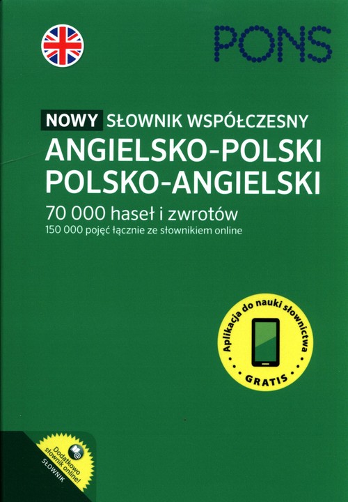 Angielsko-polski, polsko-angielski słownik reprezentujący serię Nowych słowników współczesnych PONS to doskonała propozycja dla uczniów, studentów i słuchaczy szkół językowych. Słownik ten powinien znaleźć się również na półkach w siedzibach firm utrzymujących kontakty z zagranicznymi partnerami – zawartą w nich wiedzę można wykorzystywać w codziennej korespondencji. Słownik zawiera 70 000 haseł i zwrotów, czyli wystarczający zasób słownictwa, aby zaspokoić potrzeby językowe większości użytkowników na poziomie średnio zaawansowanym. Zawiera liczne dodatki, ułatwiające pracę z językiem – zarówno jego nauką jak i pracą z nim, np. przy tłumaczeniach. APLIKACJA DO NAUKI SŁOWNICTWA GRATIS! Nowe wydanie słownika oferuje dodatkowo darmowy kod dostępu do zestawu 1000 najważniejszych angielski słów w aplikacji Fiszki językowe PONS. Aplikacja umożliwia powtórkę i utrwalenie najważniejszych słów i zwrotów. Nagrania do poszczególnych fiszek zostały przygotowane przez rodzimych użytkowników języka angielskiego. Aplikacja umożliwia także przeprowadzenie szybkiego testu znajomości słownictwa - całościowo lub jedynie z wybranego działu.