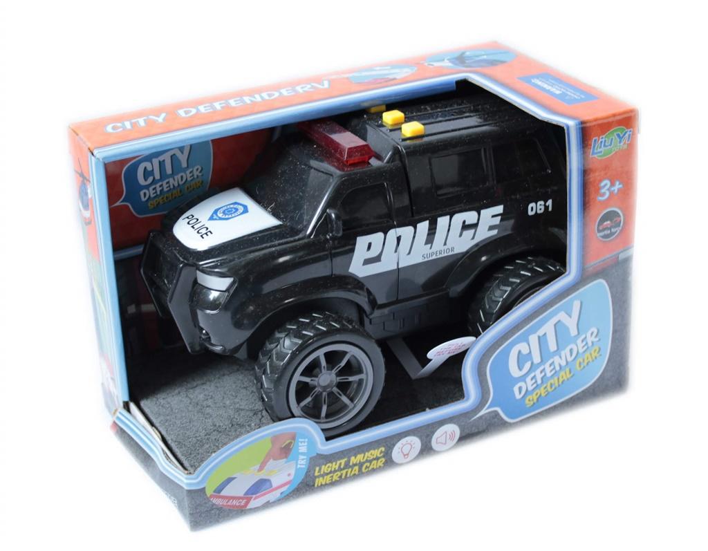 Policyjny samochód z sygnalizacją świetlną i dzwiękami.