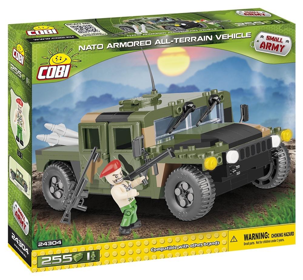 Spełniający wiele różnych zadań, pojazd kołowy o bardzo wysokiej mobilności. Model ten jest inspirowany samochodem terenowym będący na standardowym wyposażeniu Armii Amerykańskiej i większości państw sojuszniczych USA. Wersja pojazdu odpowiada tej w malowaniu moro, przeznaczonej do operacji między innymi w obu Amerykach i Europie.Model posiada wiele różnorodnych funkcji, w tym: otwierane drzwi i tylny bagażnik, właz w dachu, ruchomy ciężki karabin maszynowy, obracające się koła oraz reflektory ze specjalnego tworzywa fluorescyjnego, które świeci w ciemności. Zestaw zawiera również figurkę żołnierza - komandosa Czerwonych Beretów uzbrojonego w karabin snajperski, wyrzutnię przeciwpancerną oraz dwie rakiety.255 wysokiej jakości elementów,wyprodukowane w UE przez firmę z ponad 20-letnią tradycją,spełniają normy bezpieczeństwa dotyczące produktów dla dzieci,w pełni kompatybilne z innymi markami klocków konstrukcyjnych,klocki z nadrukami nie odkształcają się i nie bledną w czasie zabawy czy pod wpływem temperatury,czytelna i intuicyjna instrukcja oparta na rysunkach i ikonach,1 figurkę żołnierza z akcesoriami