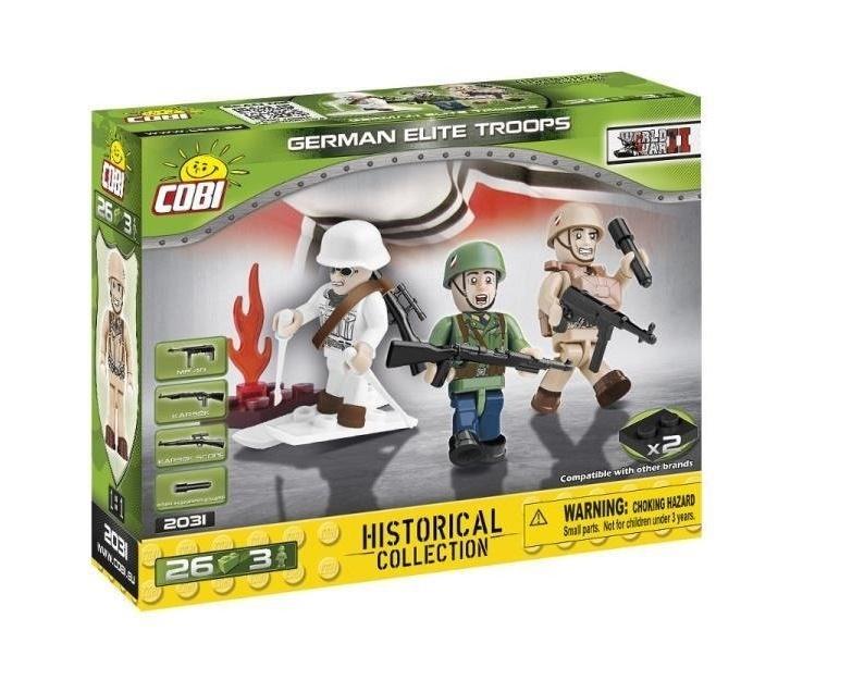 Dwie figurki posiadają nowe nadruki długich butów z cholewami. Figurka została wyposażona w rzadki biały hełm, narty oraz kijki. Po raz pierwszy w ofercie COBI pojawił się gumowy pas nośny na broń długą oraz karabin snajperski z lunetą Mauser Kar 98K.