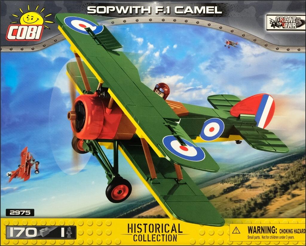 estaw Sopwith F.1 Camel - brytyjski samolot myśliwski firmy COBI (nr kat. 2975). Historyczna maszyna z okresu I Wojny Światowej.