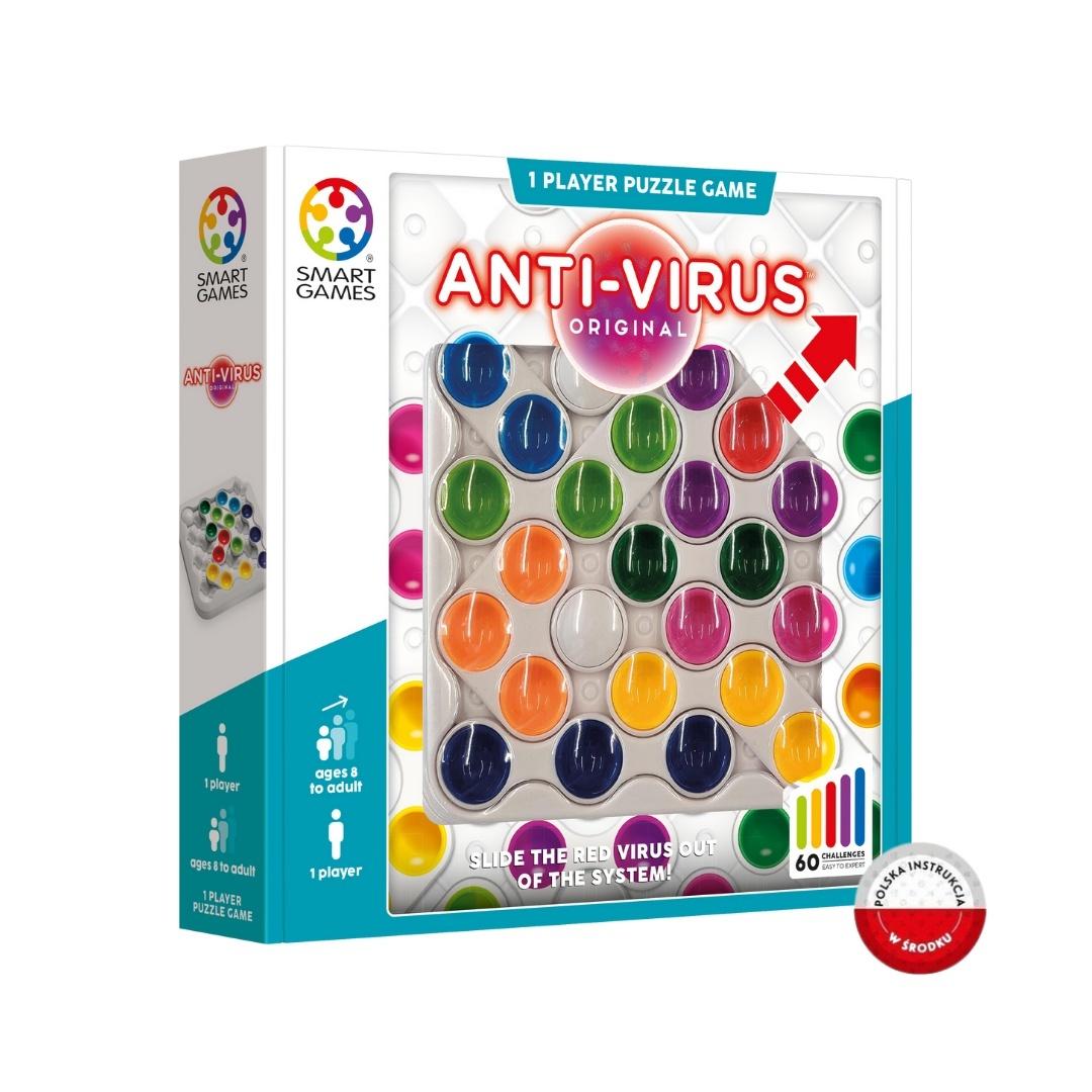 ""Antywirus"" to atrakcyjnie wydana gra logiczna. Celem gracza jest usunięcie czerwonego wirusa przez szczelinę w rogu planszy. 60 zadań o narastającym poziomie trudności, rozwinie u dziecka zdolność nieszablonowego myślenia i koncentrację. Czy zdołasz rozwiązać każde z wyzwań i pokonać wirusa?