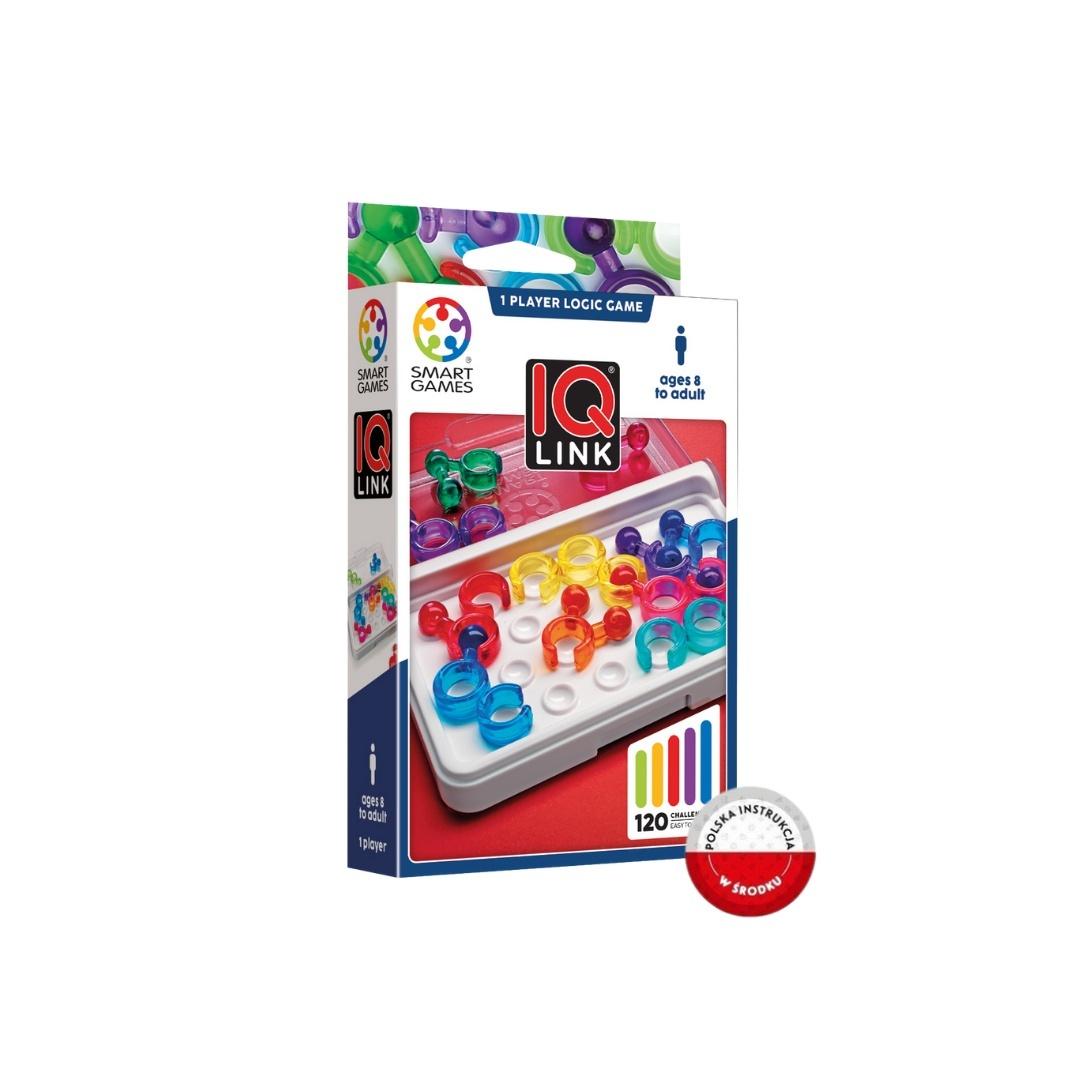 Czy potrafisz umieścić na planszy wszystkie elementy? ""IQ Link"" to kompaktowa gra logiczna, w której wykorzystując kreatywność nieszablonowe myślenie, zmierzysz się ze 120 zagadkami. Dzięki prostym zasadom i atrakcyjnej formie, zyskasz wiele godzin doskonałej i rozwijającej rozgrywki.