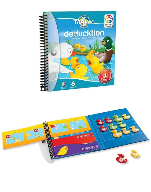 Kaczuszki 48 ZADAŃ WIEK + 6 SGT 270-8 Umieść kaczki w rządku- jedna za drugą! Każda mała kaczuszka musi trzymać się swojej mamy! Żółta mama ma pod opieką czworo kaczątek, czerwona - trójkę, a zielona - dwa kaczątka. Postępuj zgodnie z kolorowymi i numerycznymi wskazówkami i znajdź właściwe miejsce dla każdej kaczki. Kaczuszki to magnetyczna gra podróżna z 48 zadaniami o różnym poziomie trudności. Jak grać? 1. Wybierz zadanie. 2. Umieść wszystkie kaczki na planszy. W każdym zadaniu znajdują się konkretne wskazówki, które pomogą Ci znaleźć dla nich właściwe miejsce. Kaczki o takich samych kolorach muszą tworzyć łańcuch (muszą być umieszczone w swoim bezpośrednim sąsiedztwie - pionowo lub poziomo) 3. Pamiętaj! Każde zadanie posiada tylko jedno prawidłowe rozwiązanie.