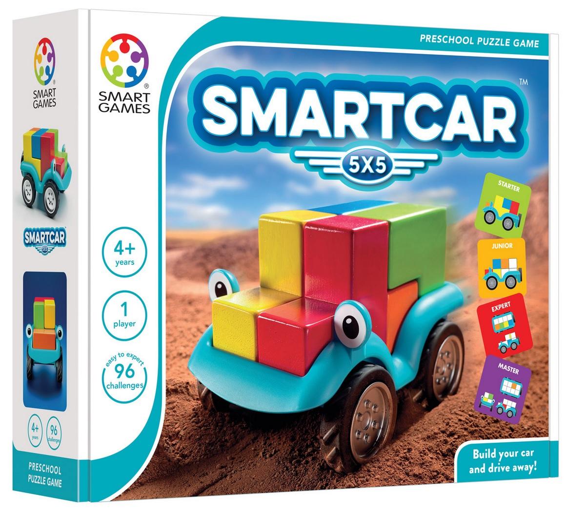 Zapraszamy do ""Mądrego Samochodzika 5x5"" - gry logicznej, w której mali gracze  spróbują  zmierzyć się z 96 zadaniami o narastającym poziomie trudności. Dziecko  korzystając z podpowiedzi, będzie próbować umieścić 5 klocków  na pace samochodu  w odpowiedni sposób. Proste zasady i solidne  wykonanie sprawią, że pociecha w naturalny sposób, poprzez zabawę,  ćwiczy zdolności manualne. Aby ułatwić  rozpoczęcie gry, zadania zostały podzielone na dwie książeczki: osobno dla  starszych i młodszych  adeptów budowania.