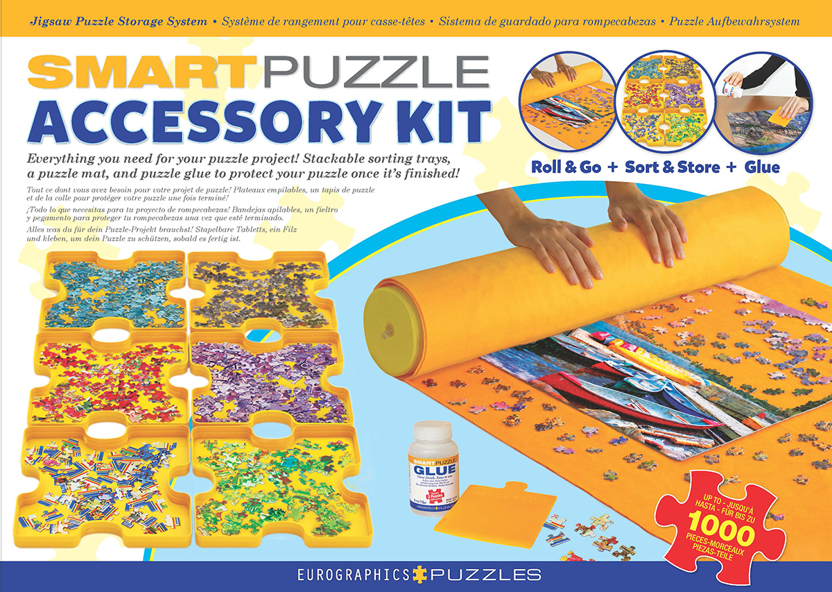 EuroGraphics Smart 3-Pack Zestaw akcesoriów.  Roll & Go to łatwy sposób na przechowywanie i transportowanie puzzli w toku.