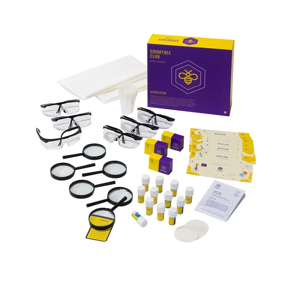 Party Boxy SmartBee Club zawierają pełne wyposażenie do przeprowadzenia doświadczenia dla 6 uczestników.