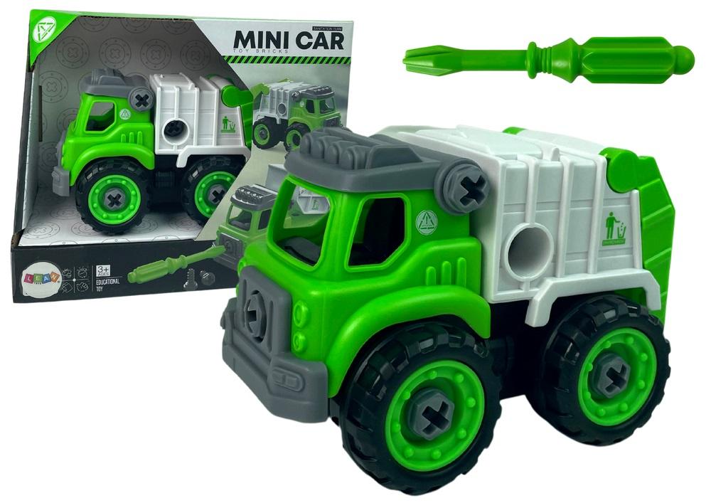Auto Śmieciarka Do Rozkręcania Zielona DIY Śrubokręt Zabawki do samodzielnego złożenia doskonale pomaga w rozwoju dziecka i jego zdolności manualnych. Przedstawiamy śmieciarkę, którą bez problemu można rozkręcić i złożyć. Spróbuj zrobić to sam! Po zabawki w składanie zauważymy wzmocnienie percepcji dotykowej i wzrokowej dziecka. Sprawdzi się podczas wielu scenariuszy zabaw, to zależy od wyobraźni Twojego dziecka. W zestawie dołączony jest śrubokręt, dzięki któremu będzie mógł rozpocząć majsterkowanie. Możliwość rozkręcania i skręcenia różnych elementów jak koła, górna część kabiny wzmocni u niego precyzje. Zabawka zapewni wiele godzin zabawy, nie tylko w formie zabawy autkiem, ale także i sprawdzi swoje siły w majsterkowaniu. Demontaż i ponowny montaż zabawki jest bardzo prosty - instrukcja obrazkowa, która znajduje się w zestawie, poinstruuje dziecko, które części połączyć ze sobą. Elementy zestawu: - ciężarówka - śrubokręt - instrukcja Wymiary całego pojazdu: 12 cm x 9 cm x 9 cm Wymiary opakowania: 18 cm x 10 cm x 15 cm Zabawka przeznaczona dla dzieci powyżej 3. roku życia. Zgodna z certyfikatem CE i normą EN71. .