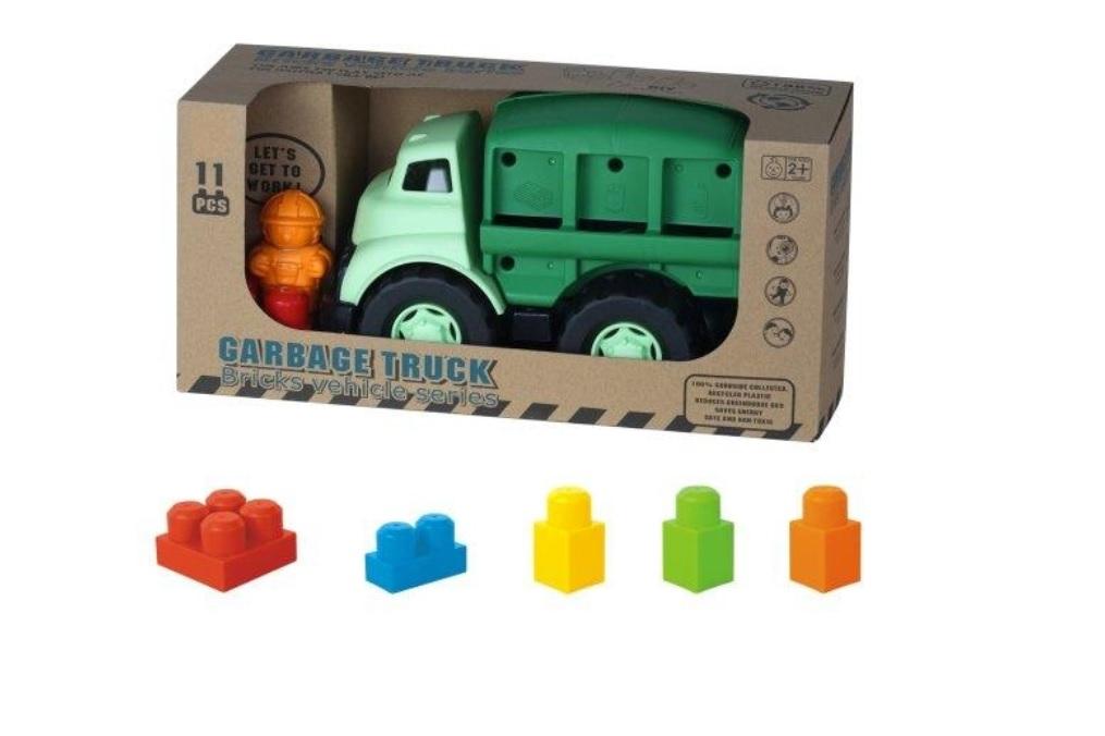 w zestawie śmieciarka, figurka strażaka i 11 klocków, dla dzieci