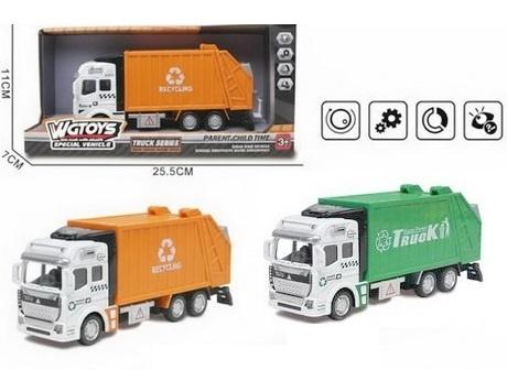 Prezentujemy model samochodu ciężarowego Śmieciarki WIGTOYS z serii Truck Series, który przeniesie Twoje dziecko w świat recyklingu i pracy dużych pojazdów. Dostępna w dwóch atrakcyjnych wersjach kolorystycznych: pomarańczowej z napisem RECYCLING i symbolami recyklingu, oraz zielonej z napisem TRUCK, sprzedawana jako 1 sztuka. Ta starannie wykonana zabawka jest idealna dla dzieci od 3 roku życia. Pojazd ma wymiary 25,5 cm długości, 11 cm wysokości oraz 7 cm szerokości, co ułatwia chwytanie i manipulację małymi rączkami. Śmieciarka została wyposażona w realistyczne funkcje, w tym efekty świetlne i dźwiękowe, które urozmaicają zabawę oraz ruchome elementy, co zachęca do aktywnej i kreatywnej rozrywki. Tego typu pojazd rozwija zdolności motoryczne, uczy odpowiedzialności za środowisko poprzez zabawę w recykling oraz inspiruje do odgrywania ról, co wzmacnia więź rodzic-dziecko. Produkt jest zapakowany w estetyczne pudełko o wymiarach 25,5 cm x 11 cm x 7 cm, co czyni go doskonałym pomysłem na prezent.