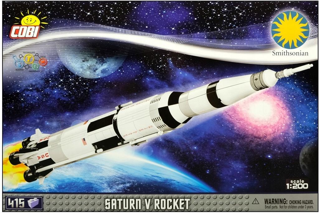 Saturn V to wielostopniowa rakieta kosmiczna jednokrotnego użytku wykorzystująca paliwo ciekłe. Była używana przez amerykańską agencję kosmiczną NASA w trakcie załogowych lotów kosmicznych Apollo i Skylab. Została zaprojektowana przez zespół naukowców i inżynierów przy współpracy z firmami: Boeing, North American Aviation, Douglas Aircraft Company oraz IBM. Rakieta wraz z modułem załogowym miała 111 metrów wysokości, a całkowita masa startowa wynosiła prawie 3000 ton. Model z klocków konstrukcyjnych COBI wiernie odwzorowuje rzeczywisty kształt i detale rakiety. To znakomity zestaw dla wszystkich pasjonatów inżynierii kosmicznej i kolekcjonerów. Model idealnie nadaje się zarówno do zabawy jak i na ekspozycję. Wydany został w związku z 50 rocznicą lądowania człowieka na Księżycu. 415 wysokiej jakości elementów, wyprodukowane w UE przez firmę z ponad 20-letnią tradycją, klocki spełniają normy bezpieczeństwa dotyczące produktów dla dzieci, w pełni kompatybilne z innymi markami klocków konstrukcyjnych, klocki z nadrukami nie odkształcają się i nie bledną w czasie zabawy czy pod wpływem temperatury, czytelna i intuicyjna instrukcja oparta na rysunkach i ikonach, model z serii STEM (Science, Technology, Engineering, Mathematics).