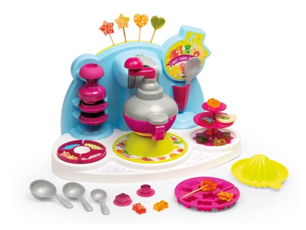 Przygotuj własne cukierki, kolorowe lizaki lub ciasteczka. W skłąd zestawu wchodzi między innymi: trzepaczka, miska, 3 miarki, łyżka, foremka silikonowa do cukierków i lizaków, wyciskacz do cytrusów, foremka do ciastek o 3 różnych kształtach, 20 patyczków do lizaków oraz książeczka z przepisami.