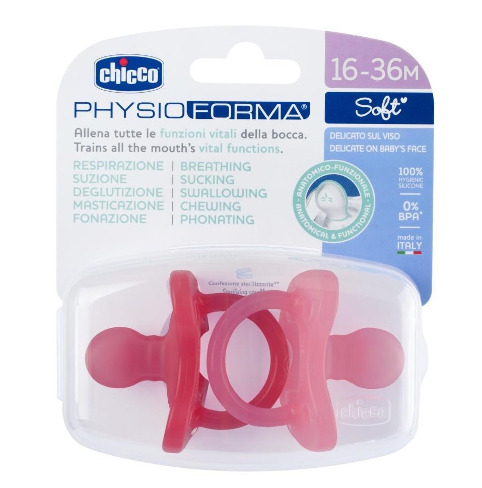 Chicco PHYSIOFORMA Soft - KSZTAŁT MA ZNACZENIE Smoczki Chicco PHYSIOFORMA Soft zostały zaprojektowane aby wspomagać prawidłowy rozwój jamy ustnej dziecka. Ich anatomiczno-funkcjonalny kształt zapewnia utrzymanie języka w odpowiedniej pozycji, co sprzyja naturalnemu oddychaniu i prawidłowej pracy mięśni jamy ustnej. Cienka podstawa i zakrzywiona główka odwzorowują fizjologiczne ułożenie podniebienia, wspierając zdrowy rozwój aparatu mowy. Zostały zaprojektowane z myślą o naturalnym wsparciu rozwoju jamy ustnej. Wykonane w 100% z silikonu, są wyjątkowo delikatne dla skóry. Jak kształt smoczka PHYSIOFORMA Soft wpływa na 5 kluczowych funkcji jamy ustnej Dziecka: Oddychanie - Anatomiczny kształt smoczka wspomaga naturalne ułożenie języka, w którym drogi oddechowe pozostają otwarte, umożliwiając swobodne oddychanie przez nos. Ssanie - Nieodżywcze ssanie to podstawowa umiejętność dziecka, która rozpoczyna się na długo przed urodzeniem i ma pozytywny wpływ na zdrowie emocjonalne dziecka. Połykanie - Zakrzywiona główka smoczka zachęca do pionowego ruchu języka w kierunku podniebienia i sprzyja rozwojowi mięśni jamy ustnej. Żucie - Ergonomiczny kształt wspiera fizjologiczną pracę mięśni, która w połączeniu z prawidłową postawą języka ma kluczowe znaczenie dla rozwoju szczęki, wzrostu zębów i jakość żucia. Mowa - Smoczek wspiera prawidłowy rozwój jamy ustnej, aparatu mowy i przygotowuje do prawidłowej artykulacji językowej. Komfort i bezpieczeństwo przez cały dzień Miękki silikon, z którego wykonane są smoczki, nie powoduje podrażnień ani nie zostawia śladów na delikatnej skórze dziecka. Dzięki otworom wentylacyjnym zmniejsza się ryzyko gromadzenia śliny, co pomaga utrzymać skórę suchą i zdrową. Konstrukcja smoczka została zaprojektowana tak, aby zapewnić dziecku wygodę podczas snu i codziennych aktywności. Higiena i łatwa sterylizacja Smoczki Chicco PHYSIOFORMA Soft posiadają praktyczne etui pełniące funkcję sterylizatora. Wystarczy dodać wodę do pojemnika, umieścić smoczek wewnątrz i podgrzać go w mikrofalówce przez 3 minuty - to szybkie i wygodne rozwiązanie do zapewnienia higieny. Szczegóły produktu Zestaw zawiera: 2 smoczki + etui do sterylizacji 100% silikon - materiał higieniczny i trwały Klinicznie testowane, wyprodukowane we Włoszech Bez BPA - zgodnie z obowiązującymi normami Grupa wiekowa: 16-36 miesięcy Wybierając produkty Chicco, decydujesz się na markę z tradycją i doświadczeniem. Chicco stawia na to, aby rodzice czuli się pewni w swojej roli, oferując produkty, które nie tylko bawią, ale także wspierają rozwój dziecka i ułatwiają codzienne życie.