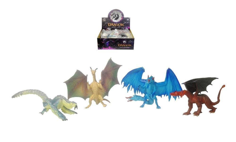 Kolorowe figurki smoków. Zbierz wszystkie modele! Produkt występuje w kilku wersjach kolorystycznych, wybierany losowo. Cena dotyczy jednej sztuki. Produkt zapakowany w przezroczysty worek. Podane wymiary są wymiarami przykładowej figurki. Produkt dla dzieci od 3 lat.