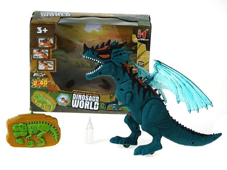Smok na radio, światło, dźwięk, funkcja pary z paszczy; 30,5x20,5x10,5cm, W/B