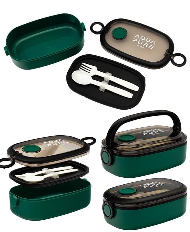 Opakowanie Śniadaniówka Aqua Pure + sztućce green/black ASTRA